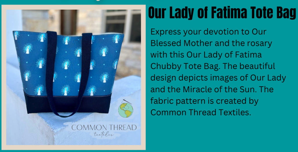 Michelle, owner and creator of Common Thread Textiles, enjoys sharing her gifts and talents by creating Catholic-inspired totes and bags that allow women to carry their faith with them in everyday life. See her beautiful collection HERE!