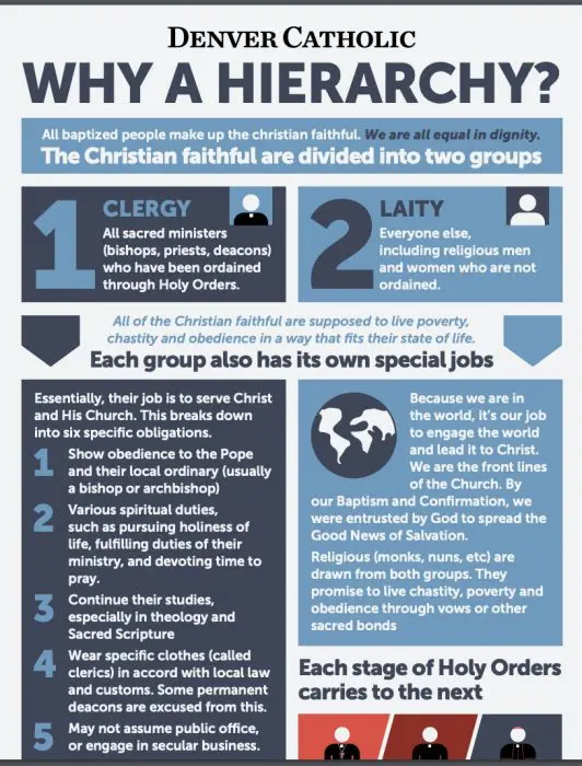 In order to help you out, today we’d like to share an excellent infographic from our friends at DenverCatholic.orgIt presents and explains each part of the hierarchy in detail.