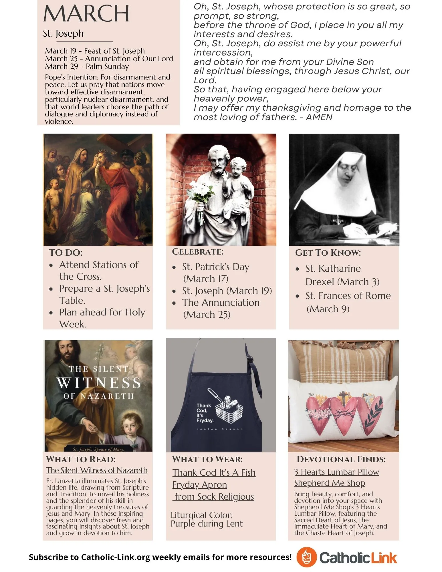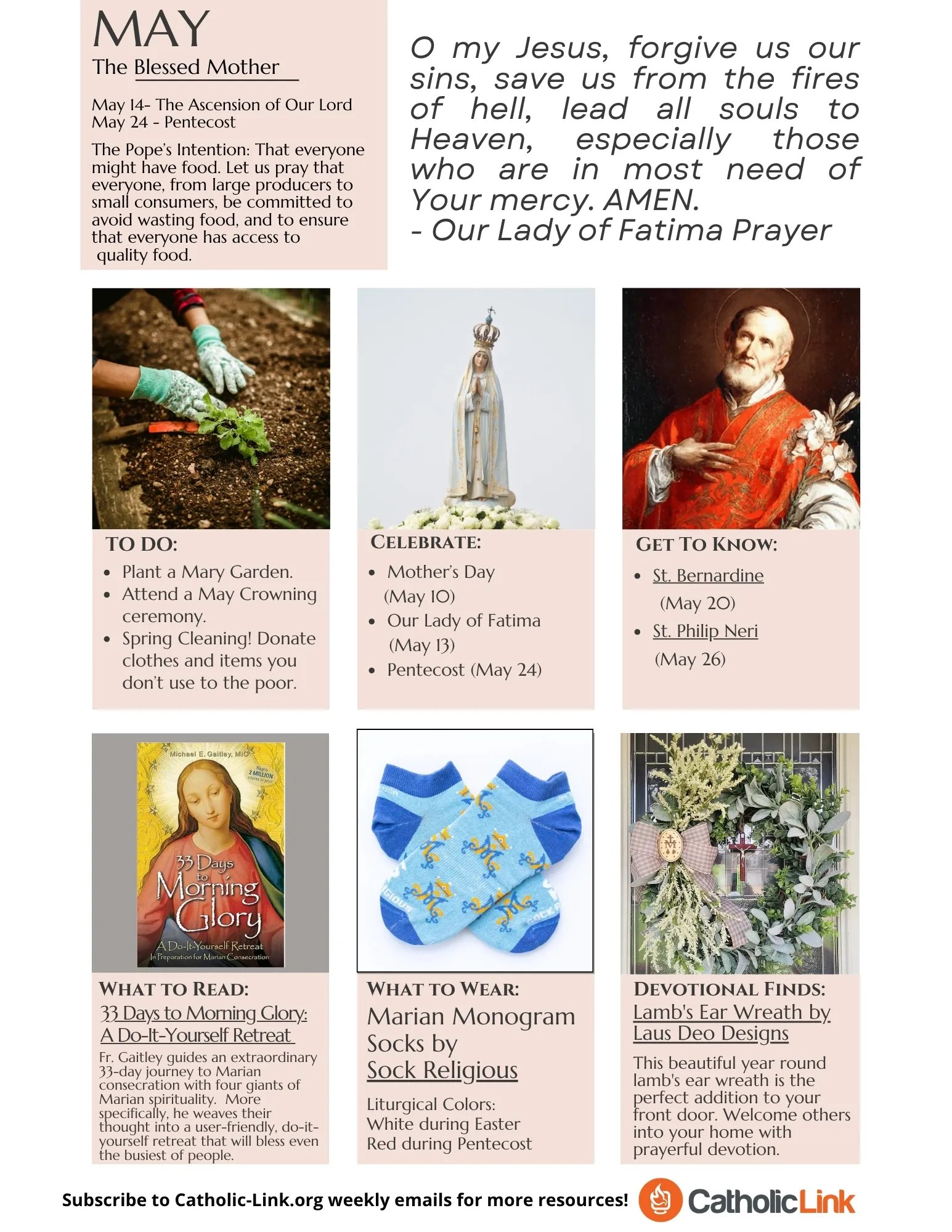 As it turns out, the Catholic Church already has an amazing solution – The Liturgical Year! By following the devotions assigned to each month, you can bring order and peace to your spiritual life. You don’t have to learn everything or pray every devotion all at once. You can focus on just a few at a time. Yet another wonderful gift our Church gives us!