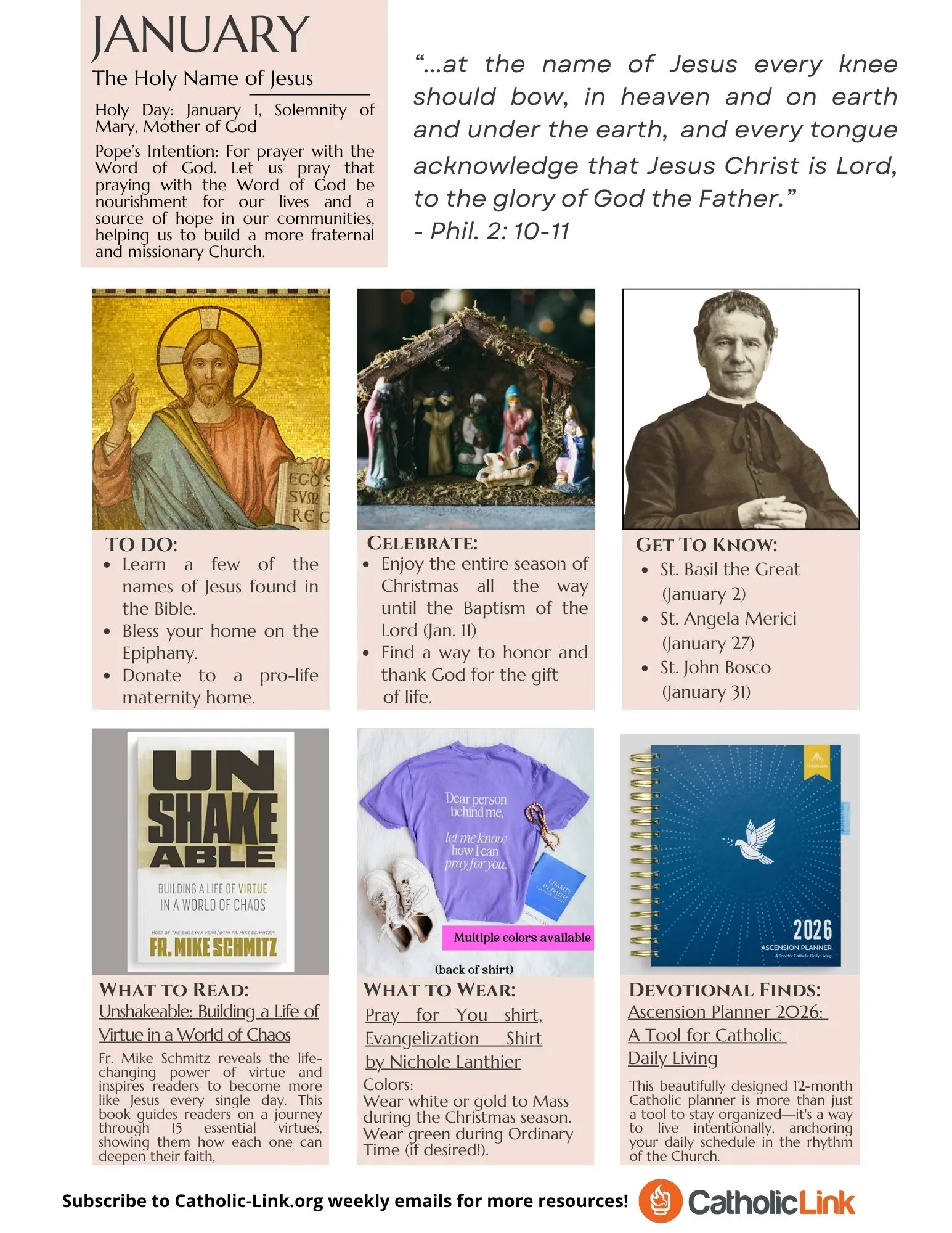 Links to purchase: Unshakeable: Building a Life of Virtue, Pray for You t-shirt by Nichole Lanthier, Ascension Planner 2026