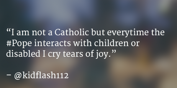 “I am not a Catholic but everytime the #Pope interacts with children or disabled I cry tears of joy.”