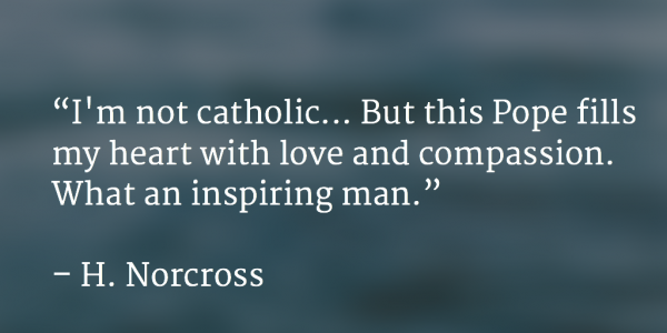 “I’m not catholic… But this Pope fills my heart with love and compassion. What an inspiring man.”