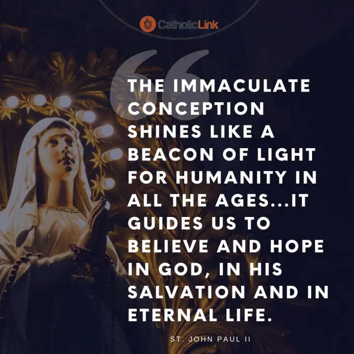 “The Immaculate Conception shines like a beacon of light for humanity in all the ages. At the beginning of the third millennium, it guides us to believe and hope in God, in his salvation and in eternal life. In particular, it lights the way of the Church, which is committed to the new evangelization.” – St. John Paul II
