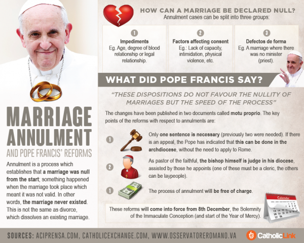 Pope Francis has also declared that annulments will be done free of charge. Though this was happening in some dioceses, it will now be universal.