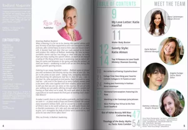 Radiant is refreshingly different. My first impression was the high quality look of the magazine. I’ve always been a firm believer that if we are going to embark on something that is a counter-cultural response to something attractive but negative, we need to be as attractive with our truths. Thankfully, Radiant does this beautifully. In fact, it looks damn classy! Every page looks professional, sleek and glossy.